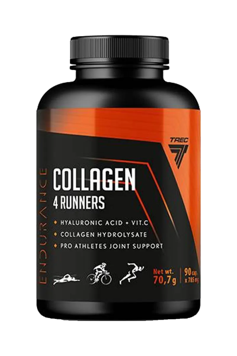 COLLAGEN 4 RUNNERS inneholder hydrolysert kollagen og hyaluronsyre. COLLAGEN 4 RUNNERS er beriket med vitamin C, som bidrar til normal kollagendannelse for normal funksjon av brusk. COLLAGEN 4 RUNNERS anbefales for personer som er utsatt for økt belastning på leddene, spesielt idrettsutøvere.