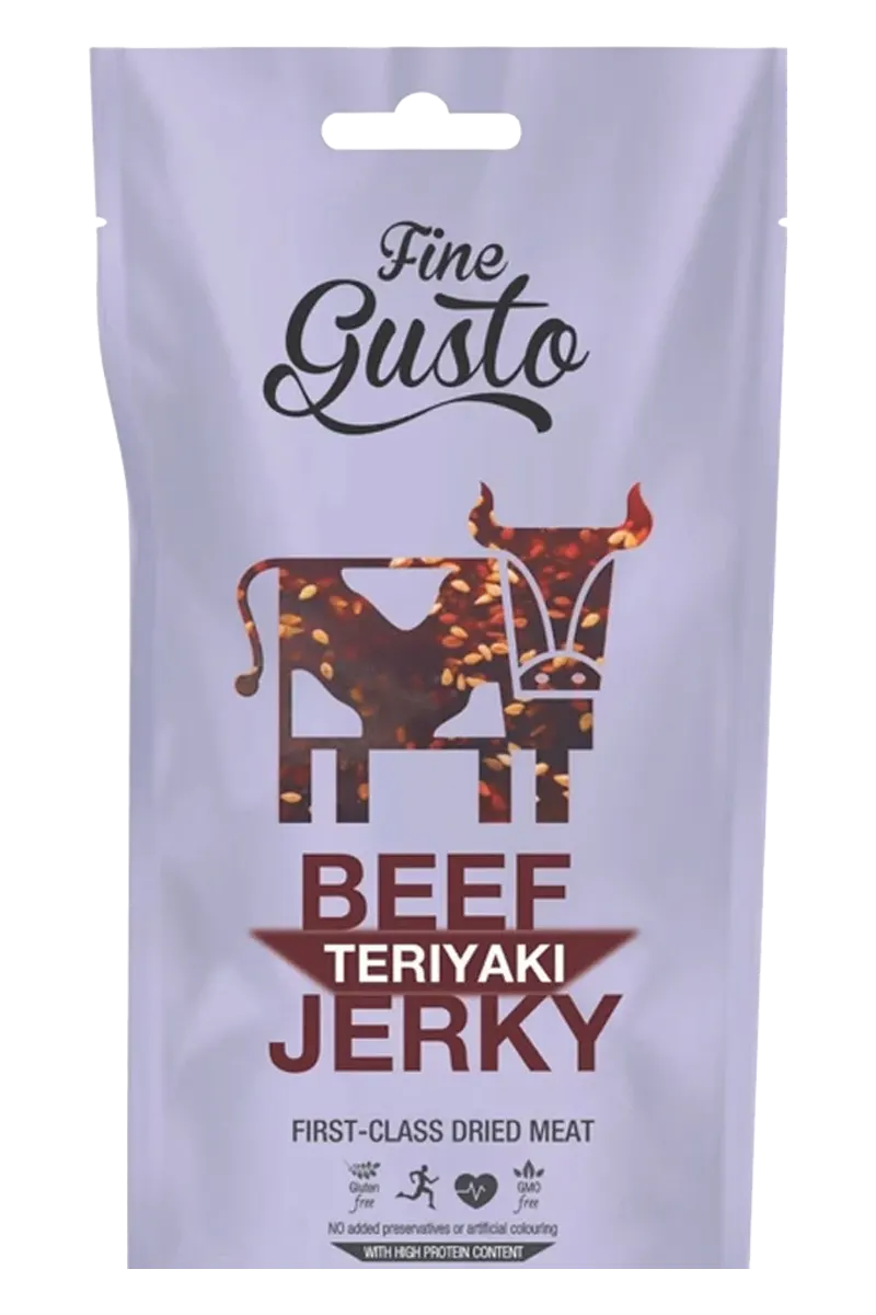 Tørket biff 70,4 % (173 g rått kjøtt brukes per 100 g produkt), bordsalt, sesamfrø, soyasaus: (drikkevann, soyabønner, salt, fermentert brennevinseddik), Worcestershiresaus: (drikkevann, gjæret alkoholholdig eddik, sukker, bordsalt, hvitvin, plommesyltetøy, tomatpuré, naturlig aroma, fermentert alkoholeddik, rapsolje, fuktighetsbevarende middel: glyserol, naturlig aroma, blandede krydder.