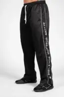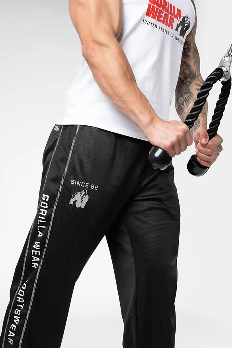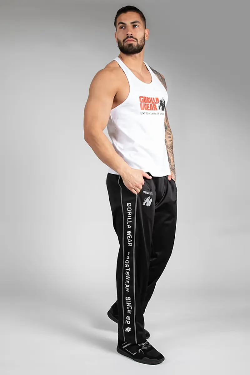 Stripen fra toppen til nederst på benet viser at du har på deg GORILLAWEAR, som har levert kvalitet siden 1982! Disse buksene er veldig behagelige og kule nok til å vise deg frem i treningsstudioet. Så hva gjør du? Kjør på! Vis gorillaferdighetene dine! Det er på tide å vise folk at du er medlem av GORILLA WEAR-familien hvor du kan velge mellom fargene Svart/Rød, Svart/Grønn og Svart/Hvit.