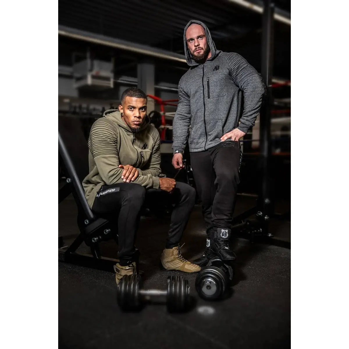 Denne Gorilla Wear Delta hettegenseren har ruglete skulderdesign og ermer som går til kragen. Gorilla Wear hettegenseren er laget for å gi brukeren komfort og bevegelse under enhver type treningsøkt. Til slutt har hetten et mykt fleece-stoff som hjelper deg med å varme og komfortabelt dekket. Det er på tide å vise folket at du er medlem av GORILLA WEAR-familien! Du kan velge mellom fargene Grå og Army Green.
