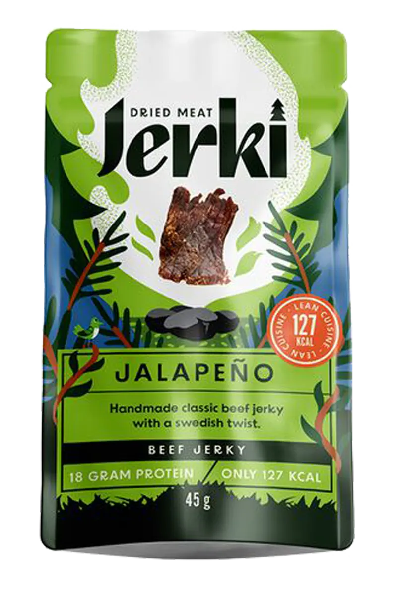 Jerky er tørket kjøtt. Jerki bruker kun biff i sin produksjon sammen med en nøye utvalgt krydderblanding for å få den perfekte kombinasjonen av smak og tyggemotstand. En perfekt, naturlig proteinrik snack.