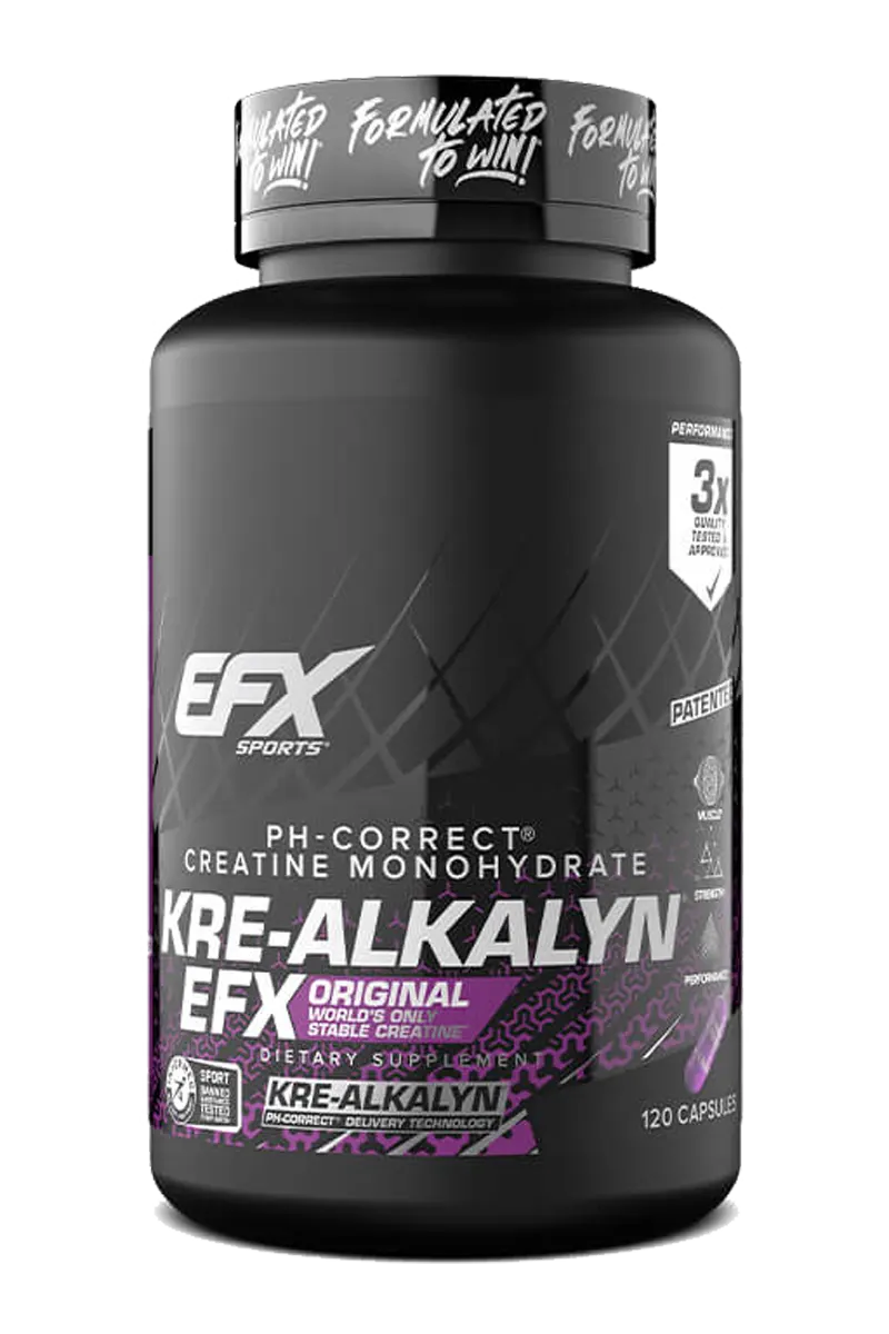 Kre-Alkalyn EFX® leverer oppblåst kreatinkraft med uovertruffen stabilitet, vitenskapelig konstruert for eksplosiv styrke, muskelvekst og topp ytelse – sertifisert ren og bygget for mestere. Kre Alkalyn EFX tilbyr et overlegent alternativ til andre kreatinprodukter på markedet. Tradisjonelle kreatintilskudd har pH-nivåer under 7, re Alkalyn EFX har imidlertid et multipatentert pH-område på 12-14, noe som resulterer i et bufret, stabilt kreatinmonohydrat. Dette betyr, ingen oppblåsthet og ingen bivirkninger!