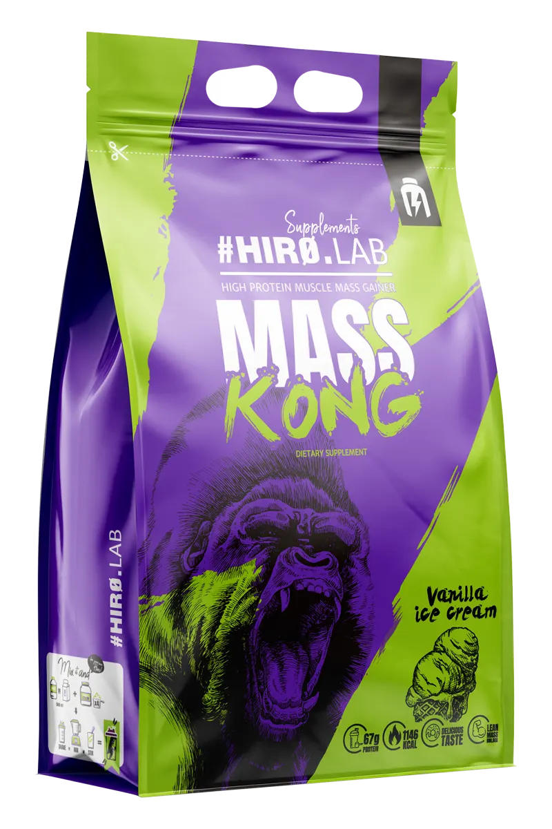 Mass Kong er spesialist på å øke kroppsvekten og selvfølgelig øke styrke og kraft. Vi vet det alle, men la oss være spesifikke – størrelsen er konge! Du har pumpet jern på treningssenteret i årevis, eller kanskje du nettopp har startet eventyret med vekter? Vil du bli større, men ingen treningsprogram eller superdiett har klart å endre det på årevis? Stol på MASS KONG fra Hiro.Lab! Dette er et produkt laget for ett formål – Å ØKE STØRRELSEN PÅ MUSKELMASSEN DIN! Bare én porsjon av produktet blandet med 500 ml skummet melk vil gi deg så mye som 1123 kalorier. Det beste av alt er at å tilberede måltidet tar deg bare noen få minutter.