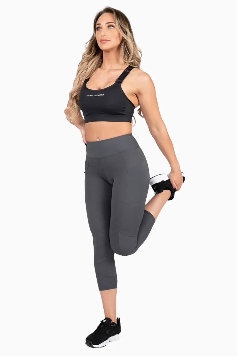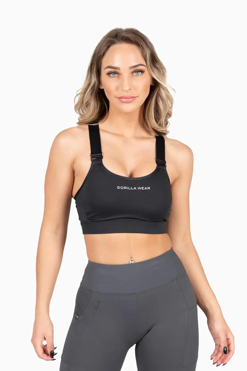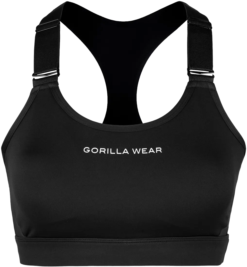 Monroe Sports-BH fra Gorilla Wear er her for å holde deg kjølig og fokusert under treningsøktene. Det elastiske materialet gjør den fantastisk å ha på seg. Polstringen er avtagbar og gir middels støtte under øvelser og bevegelser. Skulderstroppene er justerbare etter eget ønske. Sports-BHen har ribbede deler og en trykket Gorilla Wear-logo foran. Monroe Sports BH tåler enhver trening!