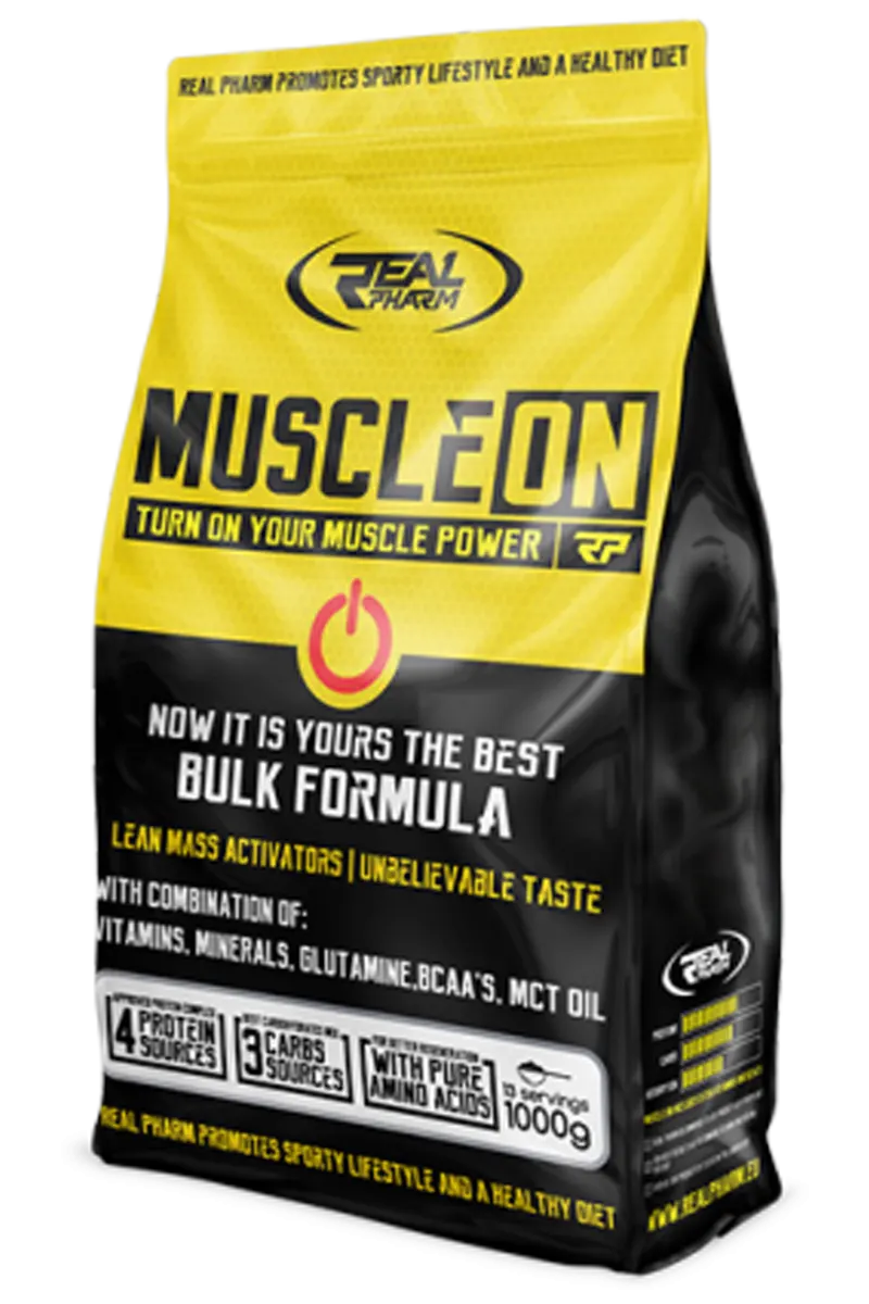 Muscle On er en gainer som inneholder et 1:1-forhold mellom protein og karbohydrater. Den skiller seg betydelig ut fra andre gainers med sin unike sammensetning, som skyldes dens lave fettinnhold, rike aminosyreprofil, høyt innhold av vitaminer og mineraler, tilsetning av MCT-olje og andre næringsstoffer. Disse egenskapene gjør at produktet kan brukes til å redusere kroppsfett samtidig som det støtter veksten av muskelmasse.