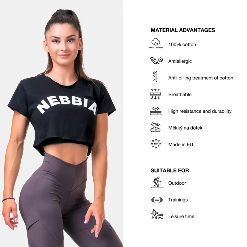 Denne sportscrop-toppen med korte ermer er et originalt plagg med sin løse passform og uferdige design. Du vil se likevel feminin ut. Sofistikert søm og lengde fremhever den smale midjen din og lar deg nyte maksimal bevegelsesfrihet. Crop-toppen er laget av ren 100% bomull, som er svært pustende og behagelig å ta på. Med denne crop-toppen vil du vinne uansett hvor du går, det være seg i og utenfor treningsstudioet.