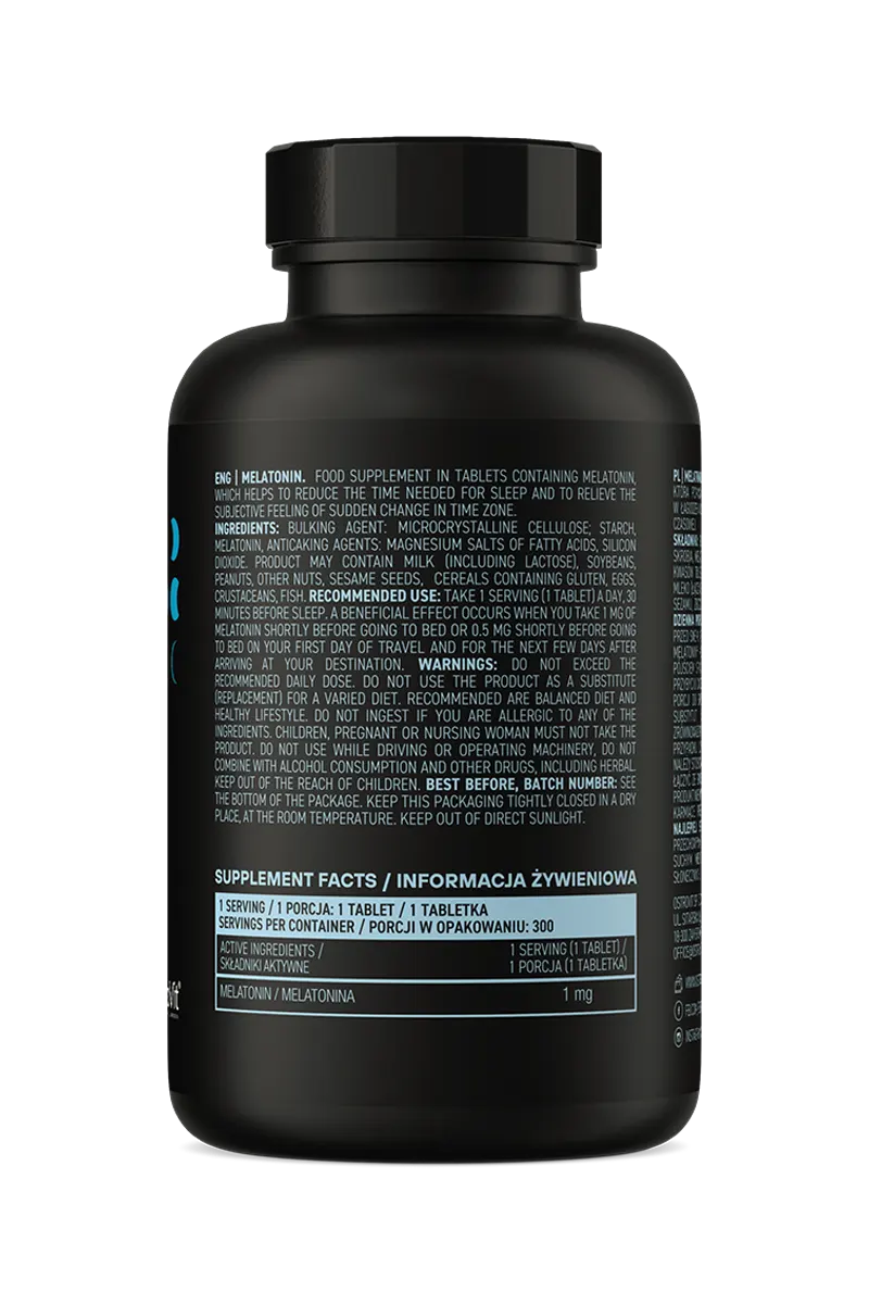 Fyllmidler: mikrokrystallinsk cellulose; stivelse; antiklumpemidler: magnesiumsalter av fettsyrer, silisiumdioksid; melatonin.