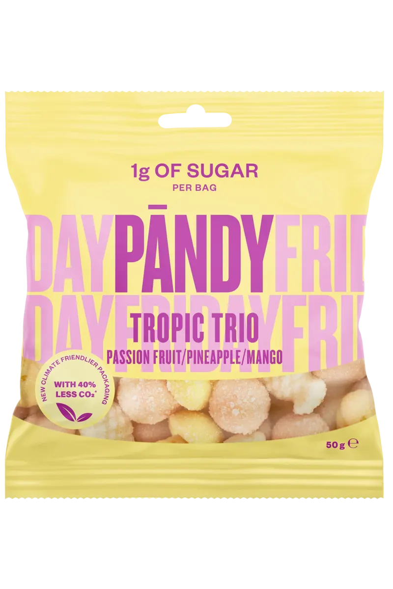 Pandy Tropic – Mindre sukker, mer kjærlighet! Pandy Candy Tropic Trio med smak av ananas, pasjonsfrukt og mango!