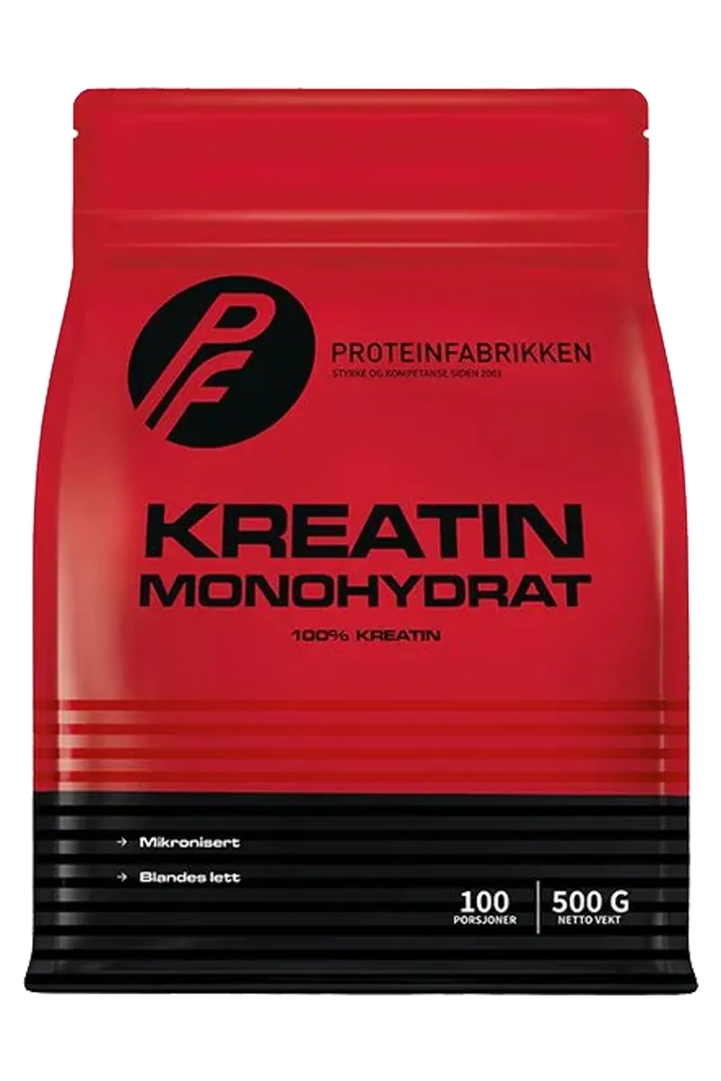 Kreatin Monohydrat er et meget effektivt produkt for å øke styrken. Kreatin er førstevalget til tusenvis av idrettsutøvere for å øke prestasjonen. Her får du 500g med kvalitetskreatin fra velkjente Proteinfabrikken.