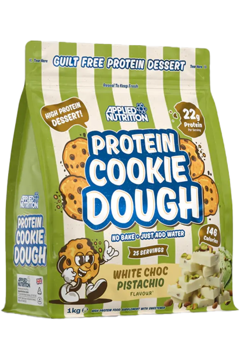 Cookie dough proteinblanding (64%) (kalsiumkaseinat (MELK), melkeproteinisolat (MELK)), whip pre-mix (sukker, skummet melkepulver (MELK), tørket glukosesirup, palmeolje, stabilisatorer (eddiksyreestere av mono- og diglyserider av fettsyrer, dinatriumfosfat, tetranatriumdifosfat, natriumalginat, tetranatriumpyrofosfat, trifosfater), fortykningsmiddel (modifisert potetstivelse), melkeprotein (MELK), kokosolje, fløtepulver (MELK), mysepulver (MELK), hvite sjokoladeflak (sukker, kakaosmør, helmelkspulver (MELK), emulgator (solsikkelecitin)), smakstilsetning, fettredusert kakaopulver, fortykningsmiddel (guargummi), natriumklorid, fargestoff (curcuminekstrakt), søtningsmiddel (sukralose).