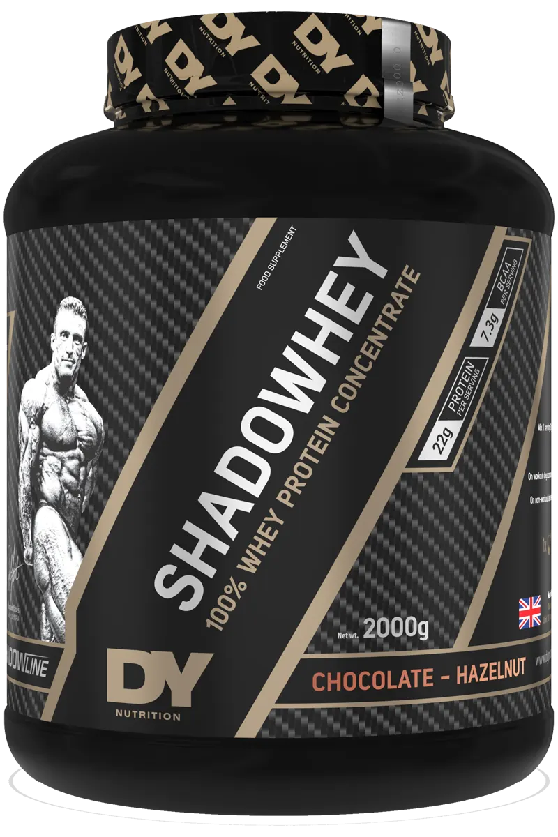 Shadowhey Concentrate – 2 kg, er et myseproteinkonsentrat fra Dorian Yates Nutrition. En stor emballasje som gir 66 porsjoner og 22 g protein per porsjon.