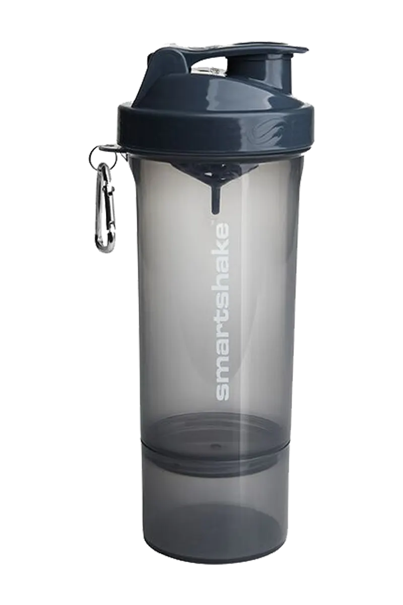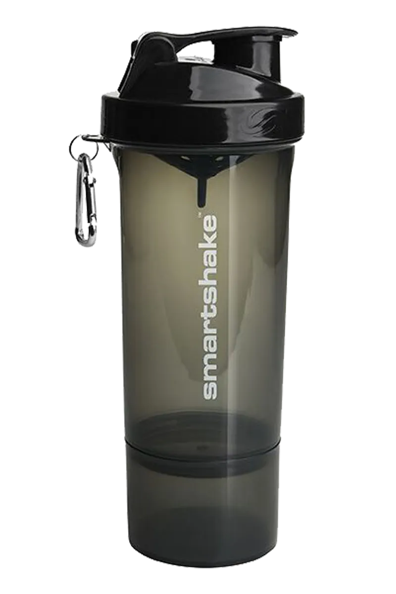 SmartShake Slim rommer 500 ml væske opp til lokket, og tilbyr et monterbart ekstra beholder for sikker oppbevaring av 1 dl ønsket kosttilskudd.
