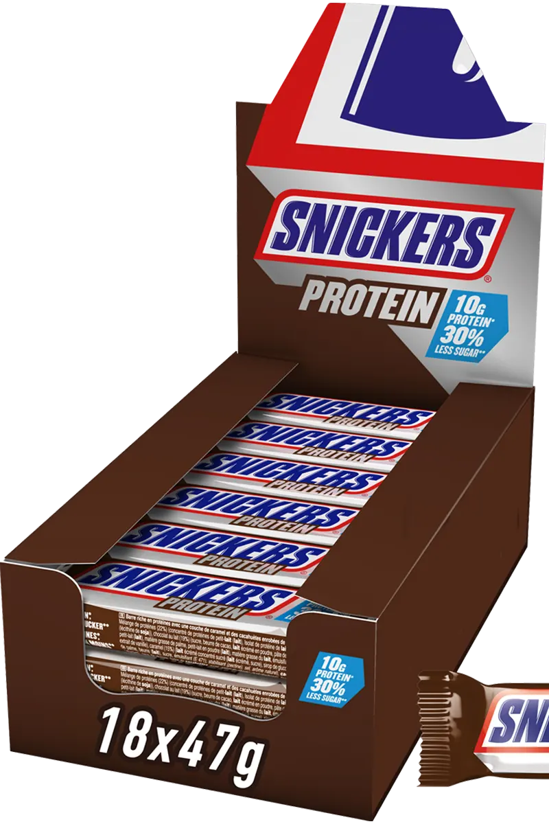 Smaken av Snickers, nå med en proteinboost! Snickers Protein Bar er laget for alle som elsker den klassiske kombinasjonen av peanøtter, karamell og melkesjokolade, men som også ønsker å øke proteininntaket. Hver bar inneholder 11 gram protein og under 200 kcal, noe som gjør den perfekt etter trening eller som en snack mellom måltidene. Denne baren inneholder 30% mindre sukker enn vanlig Snickers. Smakfull, proteinrik og superpraktisk – akkurat det du trenger for å heve snacksnivået ditt.