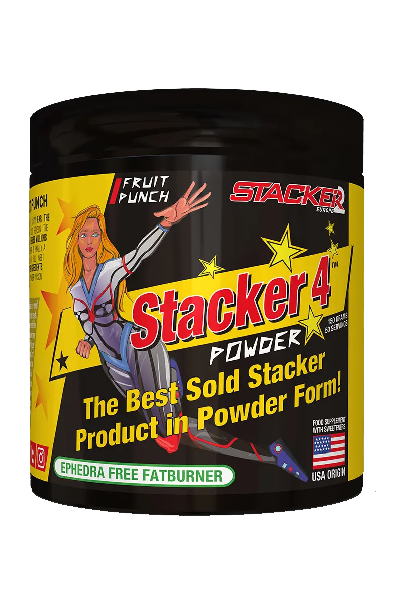 Etter 20 år finnes det endelig en variant av Stacker 4 i pulverform, en variant som ikke lenger må tas som tablett. De samme aktive og effektive ingrediensene som du kan dosere etter ønske med en miniscoop. Ta 2 scoops (3g) for å oppleve samme effekt som fra én kapsel. Stacker 4 har vært et veletablert tilskudd i mer enn 20 år. Det er det desidert bestselgende Stacker-produktet globalt og med god grunn. Sammensetningen er kraftig og effektiv og har på ulike måter hjulpet millioner av mennesker med å nå sine personlige mål. Enten det handler om å gå ned i vekt, ta bort det siste fettet på elitenivå eller oppnå en langvarig energiboost med få kalorier: Stacker 4 utgjør hele forskjellen.