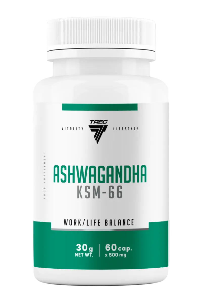 Ashwagandha rotekstrakt (Withania somnifera) (40 %), maltodekstrin, kapselskall (hydroksypropylmetylcellulose), antiklumpemiddel (magnesiumsalter av fettsyrer).