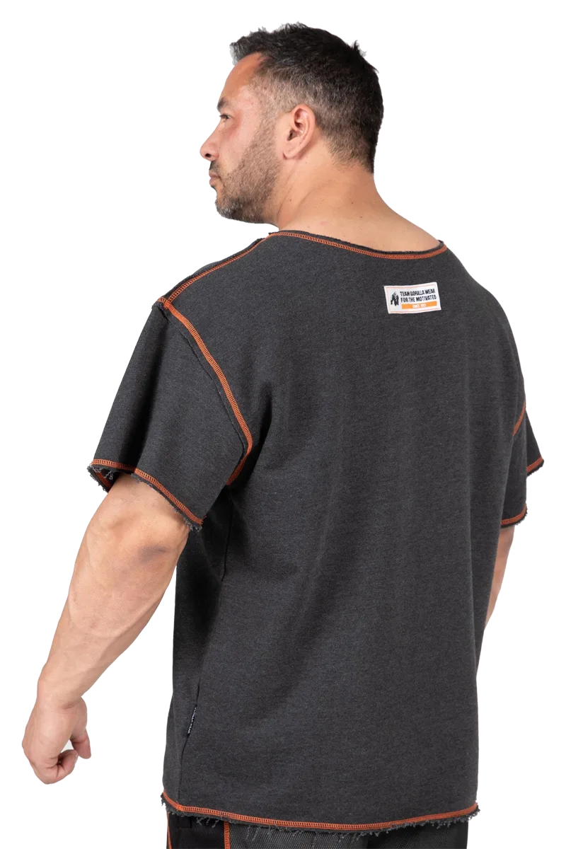Gorilla Wear sin ikoniske Wallace Workout Top er designet for kroppsbyggere som verdsetter et klassisk preg. Denne løstsittende t-skjorten har et gammeldags utseende like tidløst som din dedikasjon til trening. Utformet med oppmerksomhet på detaljer, har Wallace Workout Top distinkte sømmer og rå kanter, som skaper en robust, men likevel stilig estetikk. Den store brystlogoen viser stolt ditt engasjement for Gorilla Wear-livsstilen. Laget for intense treningsøkter, og tilbyr ubegrenset bevegelse og pusteevne. Det er din pålitelige følgesvenn når du løfter vekter, og sikrer at du ser bra ut og føler deg på ditt beste mens du utfordrer grensene dine.