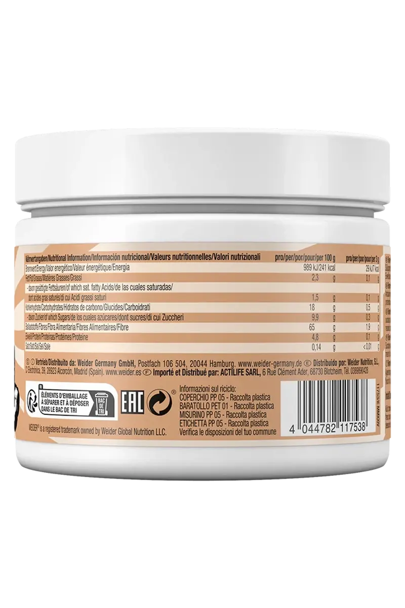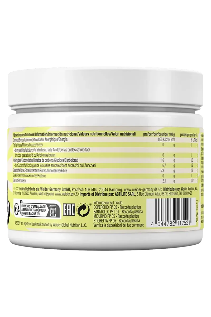 Weider sitt smakspulver er basert på inulin, en naturlig fiber som har mange helsemessige fordeler. Inulin er kjent for å fremme god tarmhelse og kan bidra til bedre fordøyelse. Fiber er en viktig del av et balansert kosthold og kan bidra til å holde deg mett lenger, noe som kan være nyttig for vektkontroll. Ved å bruke Weider sitt smakspulver får du ikke bare en smakfull opplevelse, men også et sunt tilskudd av fiber.