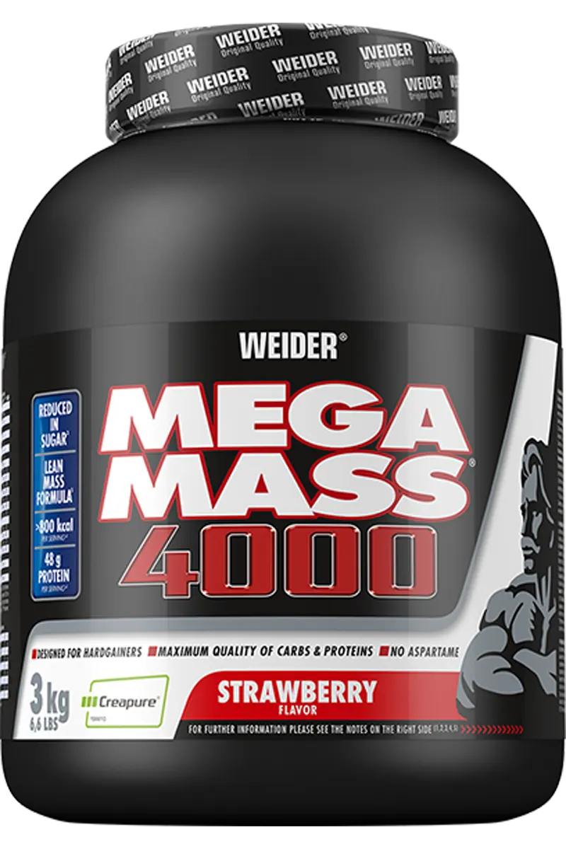 Karbohydratblanding (maismaltodekstrin, naturlig hvetestivelse, havremel, naturlig potetstivelse), proteinblanding (melkeproteinkarbohydratblanding (maismaltodekstrin, naturlig hvetestivelse, havremel, naturlig potetstivelse), proteinblanding (melkeproteinisolat, Myseproteinkonsentrat, tørket eggalbum, søtmysepulver, 2,3 % kreatinmonohydrat, triglyserider med middels kjede, søtningsmidler: Acesulfam K, natriumsakkarin, fortykningsmiddel: Guargummi: Silisiumdioksid; – Karoten, askorbinsyre, jern(III)pyrofosfat, vitamin E, niacin, sinkoksid, pantotensyre, vitamin B6, tiamin, riboflavin, folsyre, kaliumjodid;