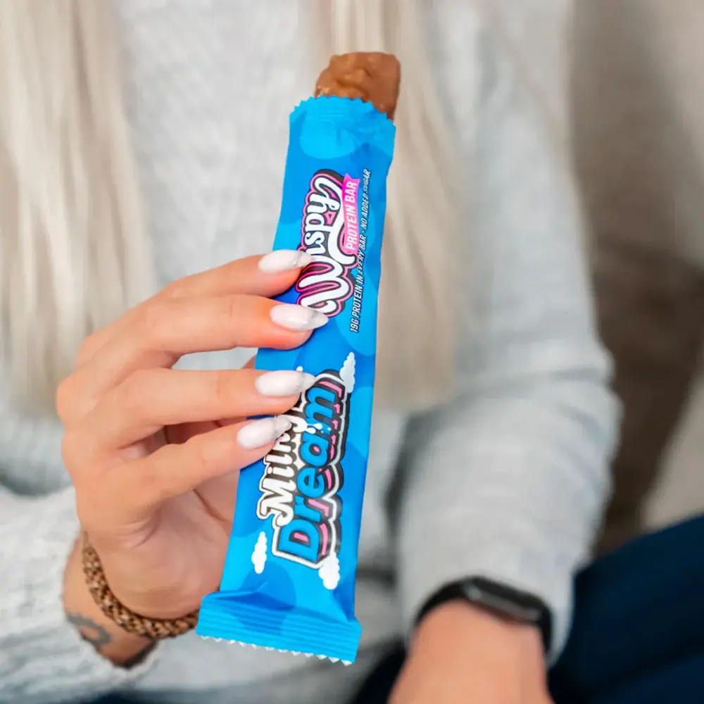 Wispy Protein Bar med Milky Dream-smak er den perfekte proteinsnack for å holde deg mett og motivert hele dagen. Den er spekket med proteiner som hjelper deg med å reparere og bygge muskelmasse etter harde og intense treningsøkter – samtidig som baren også byr på en deilig, smakfull og proteinrik opplevelse.