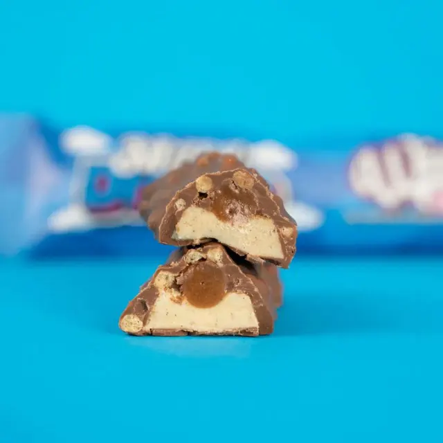 Toppen av proteinbaren er dekket med den deiligste melkesjokolade, som smelter i munnen og gir baren en fantastisk smak. Inne i proteinbaren finner du et mykt og kremet lag med kinder som fullfører den uimotståelige smaksopplevelsen.